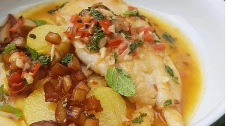 Mash Potato Quenelle, Nuoc Mam Glazed Carrots, Green Peppercorn and Soy butter sauce